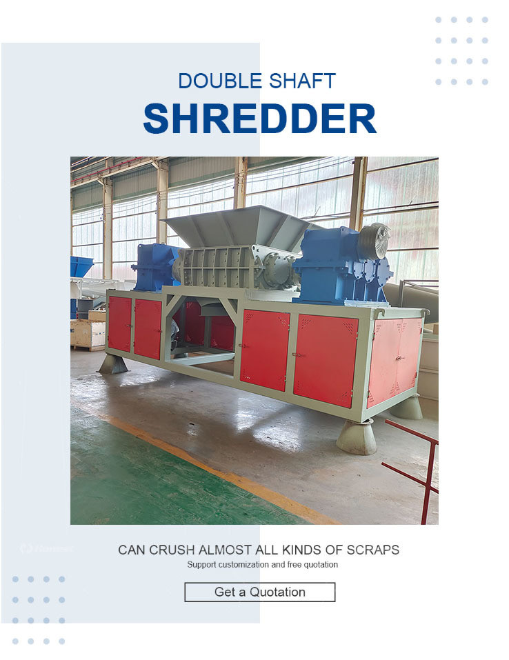 Déchiqueteuse à deux axes Le déchiqueteur à deux arbres est un déchiqueteur industriel à faible vitesse et à couple élevé d'une puissance minimale de 1,5 kW, économisant ainsi de l'énergie.